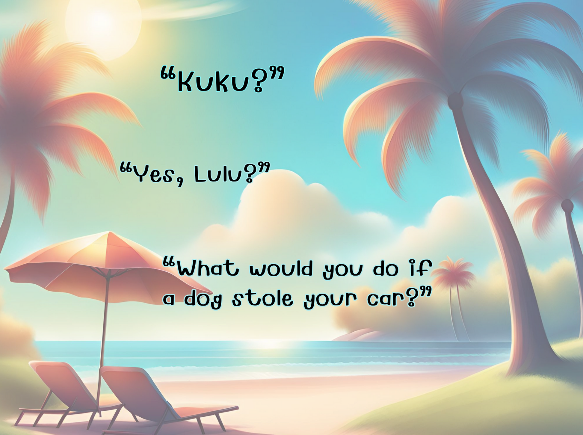 Take a ride... and it's quite a ride... through the imagination of an energetic 4 year old, as her old but still wildly cool, grandpa tries to keep up! From car stealing dogs to French staring kangaroo's, to raccoon book club fun, rock star sea turtles, detective mice, and even a happy lollipop carrying armadillo, 'Kuku, What if...?' is an exciting and relatable story written to be fun for the whole family!